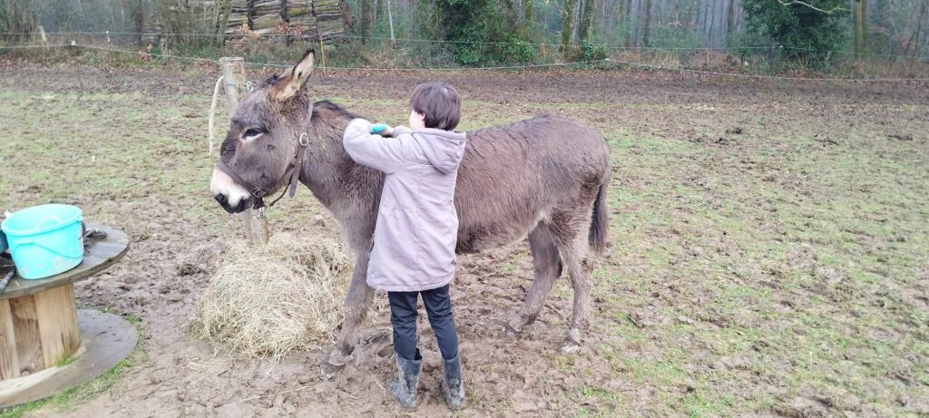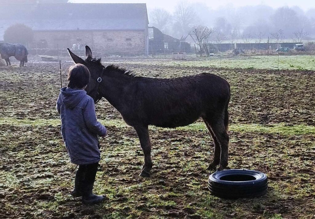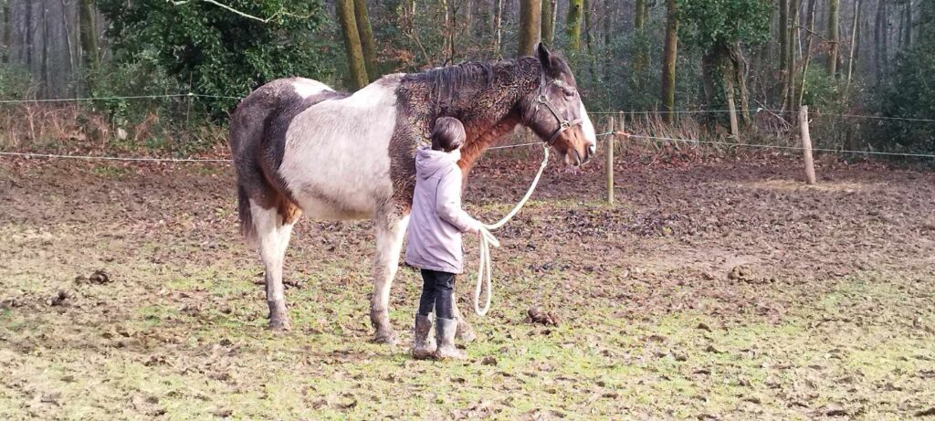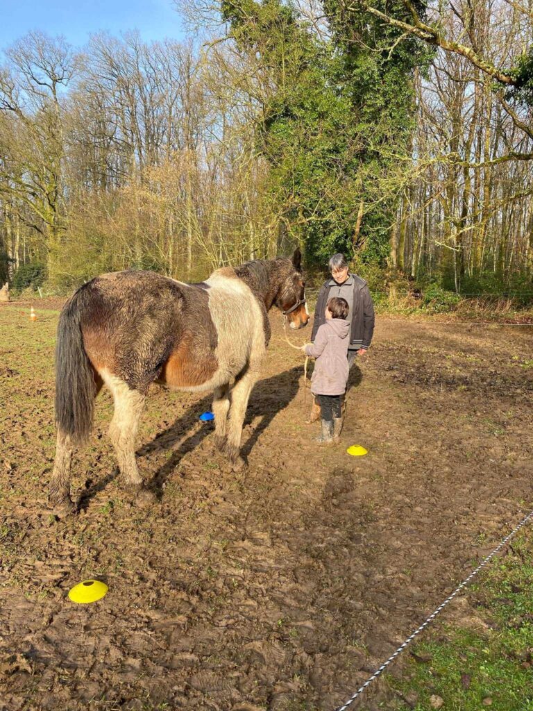 Une jolie séance avec P. sous le soleil, enfin ! Petit pansage avec Khânou puis un parcours avec la grande Luna. Apprendre à se faire confiance et à se poser pour entrer en communication. Joli programme…