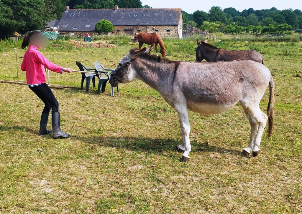 Quand l’opposition fait place à la communication, ça bouge et on avance. Les ânes sont particulièrement forts pour nous le faire comprendre ! Aujourd’hui, une séance avec une jeune adolescente très introvertie qui doit apprendre à communiquer et prendre sa place pour pouvoir s’ouvrir aux autres. Mira et la jeune fille se sont choisies ce soir, et chacune a appris de l’autre… Ma douce mais têtue Mirabelle a été très juste et a su mobiliser la jeune fille avec calme mais détermination pour l’obliger à communiquer et s’ouvrir un tout p’tit peu… Une jolie séance qui annonce l’espoir d’une belle évolution.