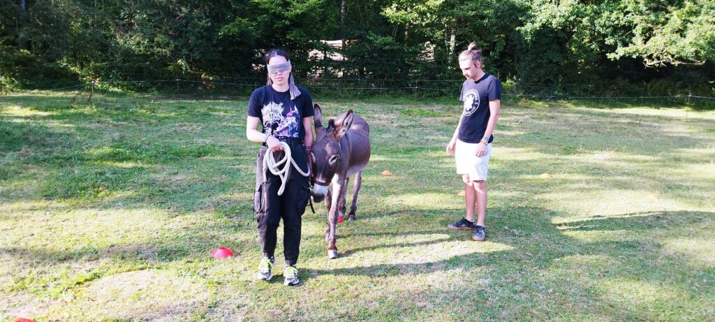 Une très jolie séance estivale basée sur la communication dans le couple mais qui impliquait d’énoncer des consignes claires à son binôme. En effet, le meneur ayant les yeux bandés, le guide se devait d’être précis dans sa description du chemin à suivre. Une séance ludique au cours de laquelle Khânou et Mira se sont montrés plus que collaboratifs mais ont su également faire preuve de caractère pour venir questionner nos amoureux sur leur façon d’exprimer leurs intentions.